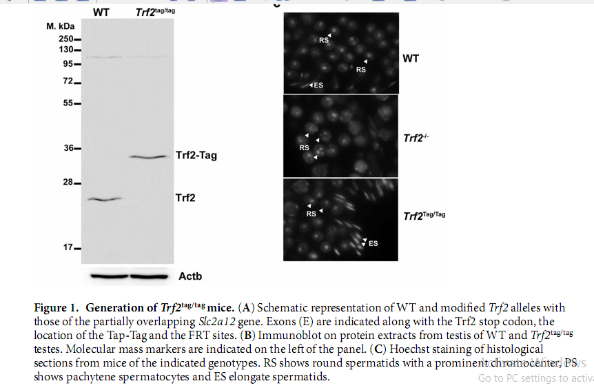 TATA-box binding protein (TBP), TBP-related factors 2 Trf2 forms a stable complex with TFIIA or the testis expressed paralogue ALF chaperoned in the cytoplasm by heat shock proteins. Trf2 is recruited to the preinitiation complex as a testis-specific subunit of TFIIA/ALF that cooperates with Tbp and Taf7l to promote haploid cell gene expression.|TBP-related factor 2 (Trf2) is the components of the core promoter complex required for gene/tissue-specific transcription of protein-coding genes by RNA polymerase II. The core promoter recognition factor Trf2 is highly expressed in a finely regulated pattern in the mouse testis during spermatogenesis, and mice lacking Trf2 are viable but sterile due to a complete arrest of late spermiogenesis with largely normal spermatogonia and spermatocyte